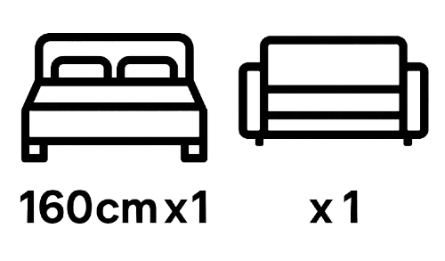 The apartment can accommodate up to 4 guests – there is a 160 cm double bed and a sofa bed.