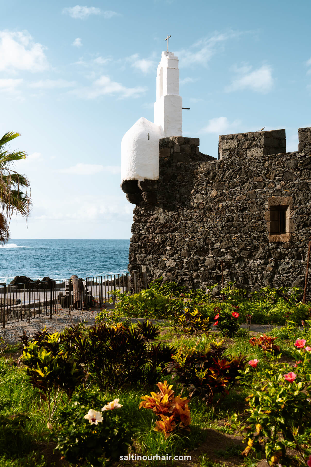 - Parque de la Puerta de Tierra — a small, atmospheric park built around the town’s old 16th-century harbor gate. Originally, this arch stood right at the water’s edge, but after the volcanic eruption reshaped the coastline, it now sits inland, surrounded by palms, stone paths and a quiet little garden.